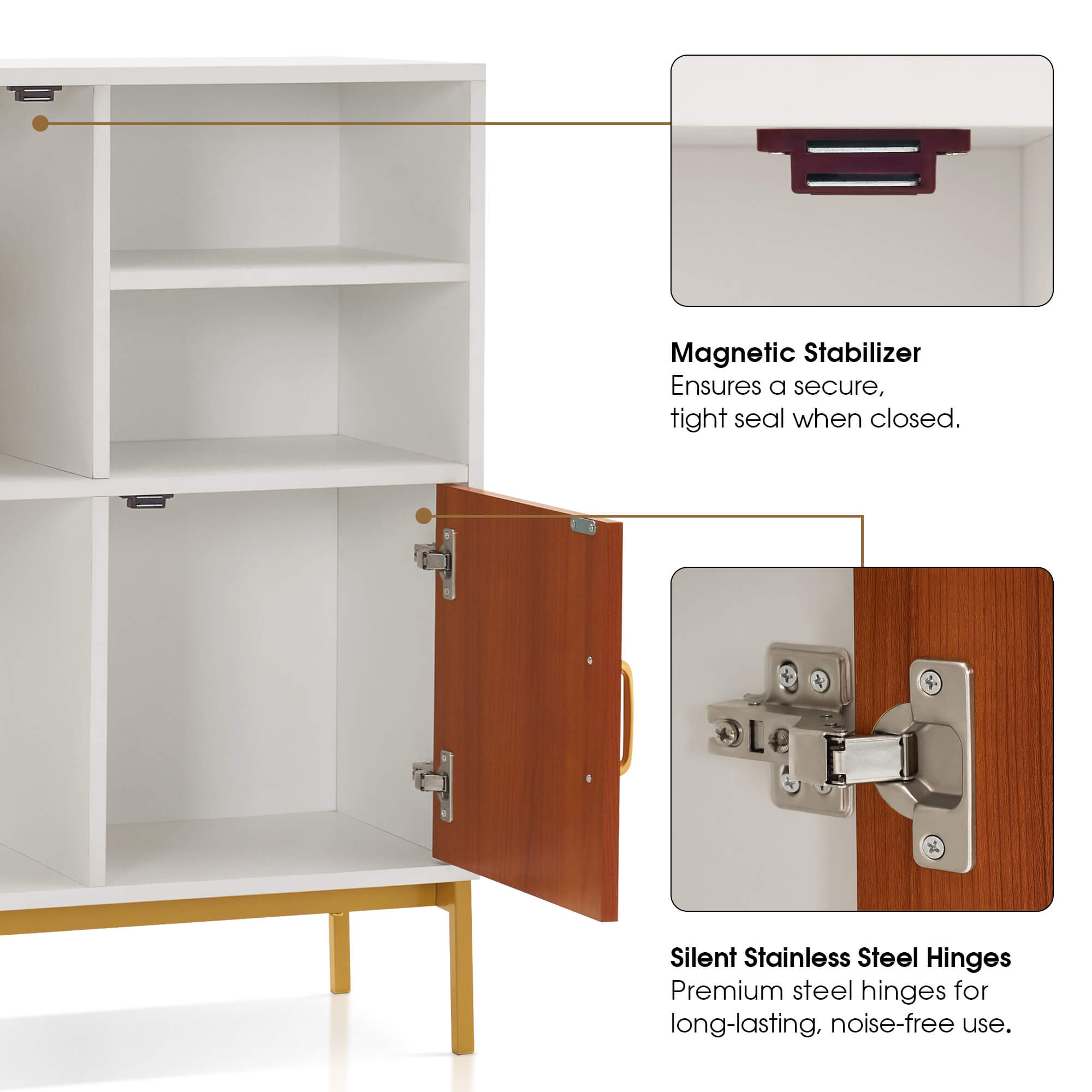 - Smooth Soft-Close Doors with Magnetic Stabilizer: Equipped with high-quality stainless steel hinges and magnetic stabilizer, the doors open and close smoothly without loud slamming. This entryway sideboard combines modern convenience with a clean, noise-free user experience
