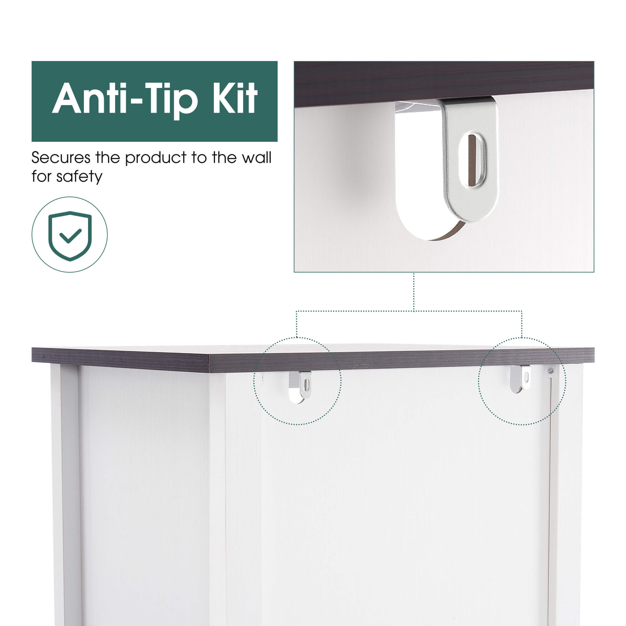 - Safe & Secure with Anti-Tip Hardware: Includes 2 wall-anchoring anti-tip kits for safety and stability—ideal for homes with children or pets. Keeps your slim bathroom cabinet secure and wobble-free.